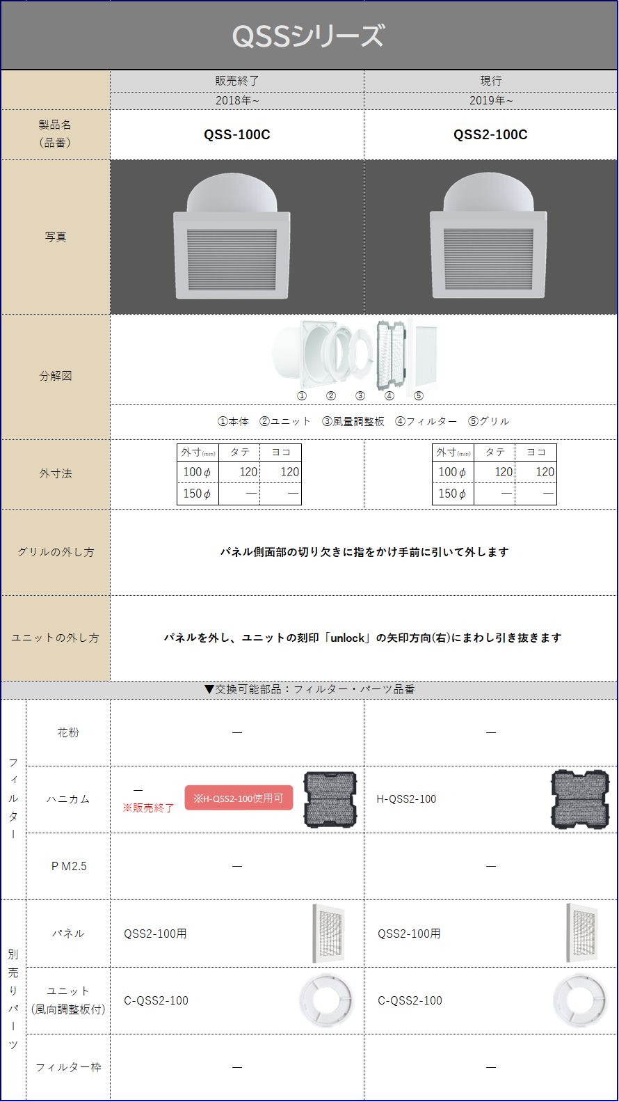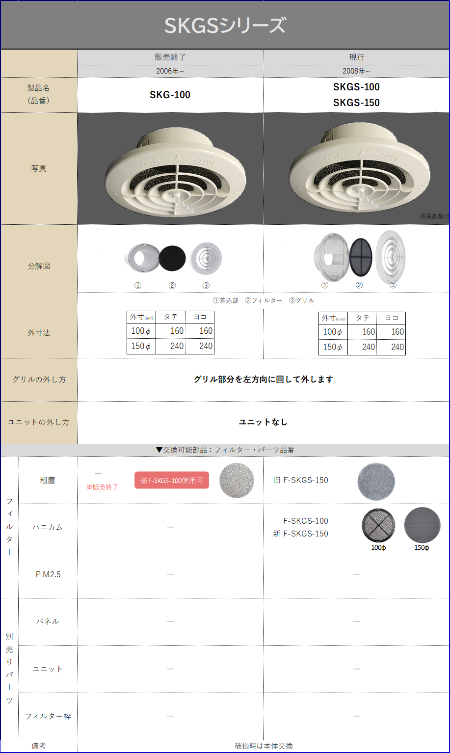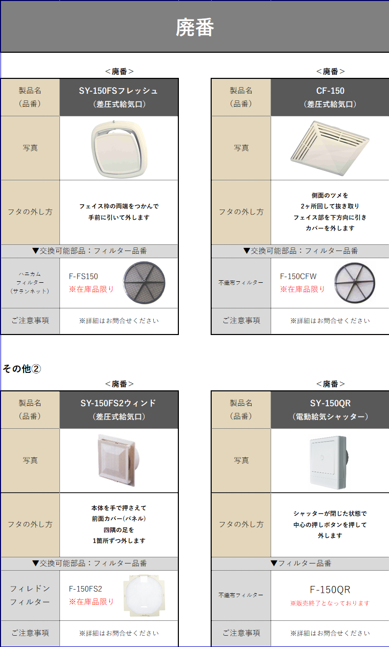 シルファー室内用給気口一覧