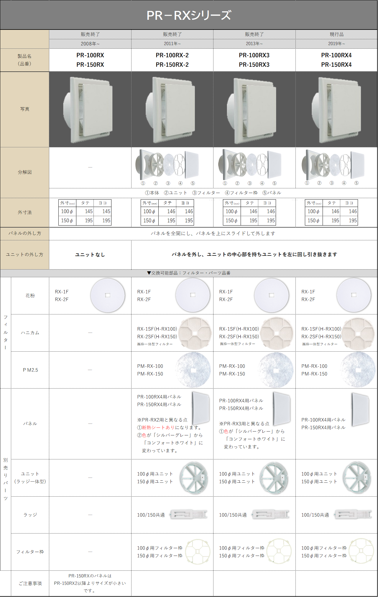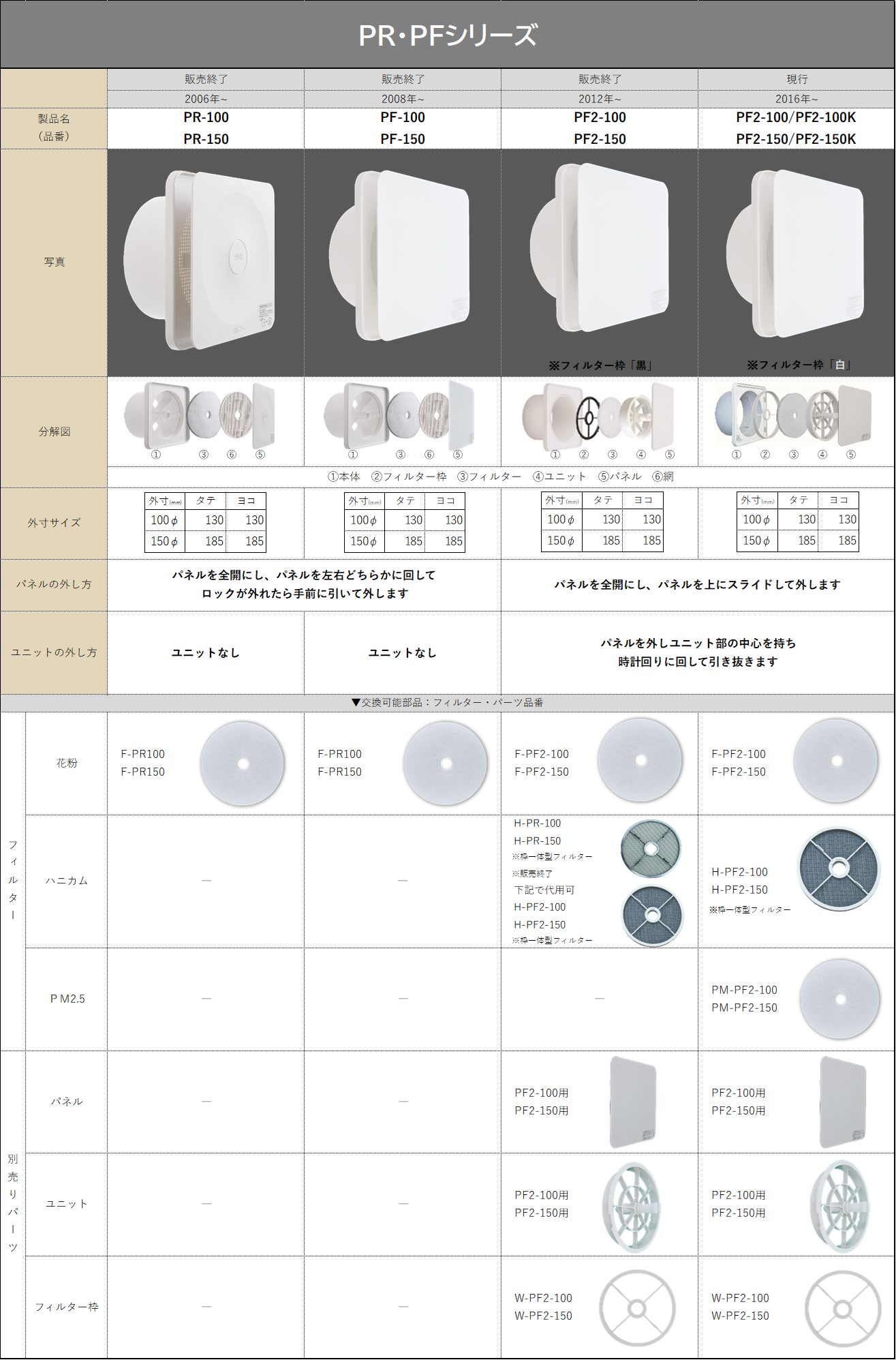 販売終了品から現行品まで確認ができるページになります。