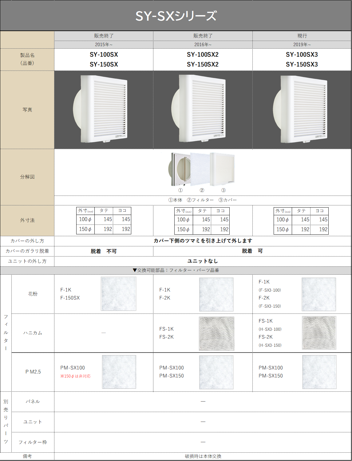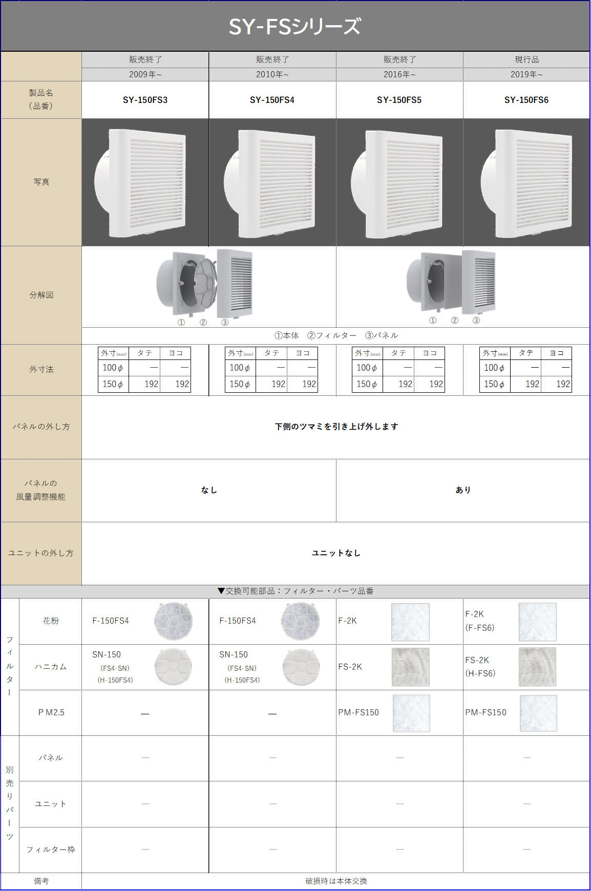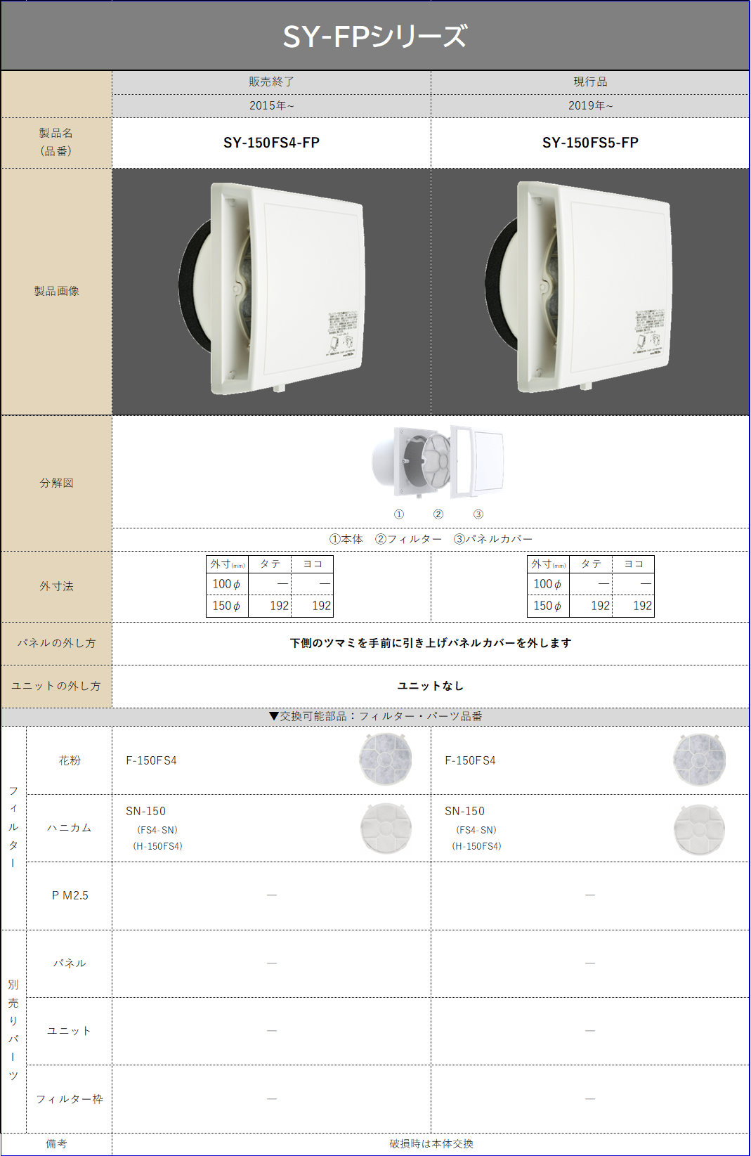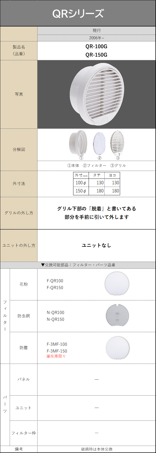 製品の購入に際して適用部材の確認や、破損してしまった場合の交換有無の確認にご利用ください。